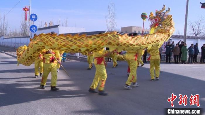 正月初二,在新疆喀什地區疏勒縣阿拉力鄉,民眾們舞起巨龍,各族群眾組成的巡游隊伍穿梭在大街小巷,大家通過舞龍舞獅給沿途群眾送去祝福,營造歡樂祥和喜慶的節日氛圍。