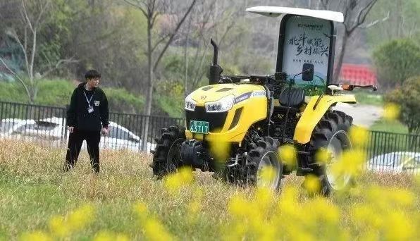 ▲位于光谷北斗大廈的武漢依迅北斗時空技術股份有限公司園區內,安裝了北斗高精度農機自動駕駛終端的拖拉機正在進行測試