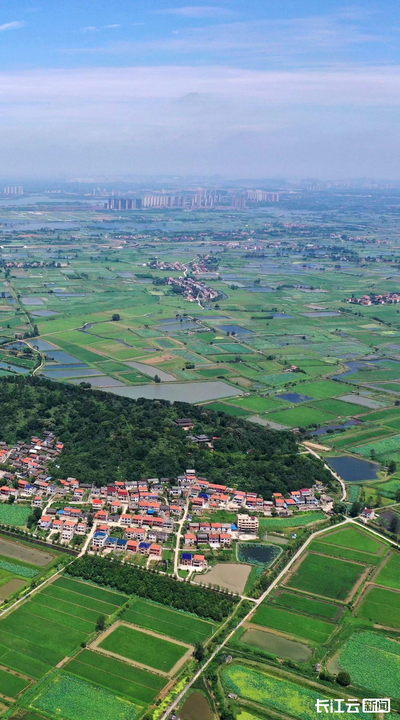 ▲鳥瞰春天的鄂州長港鎮峒山村,村容整潔、綠樹成蔭