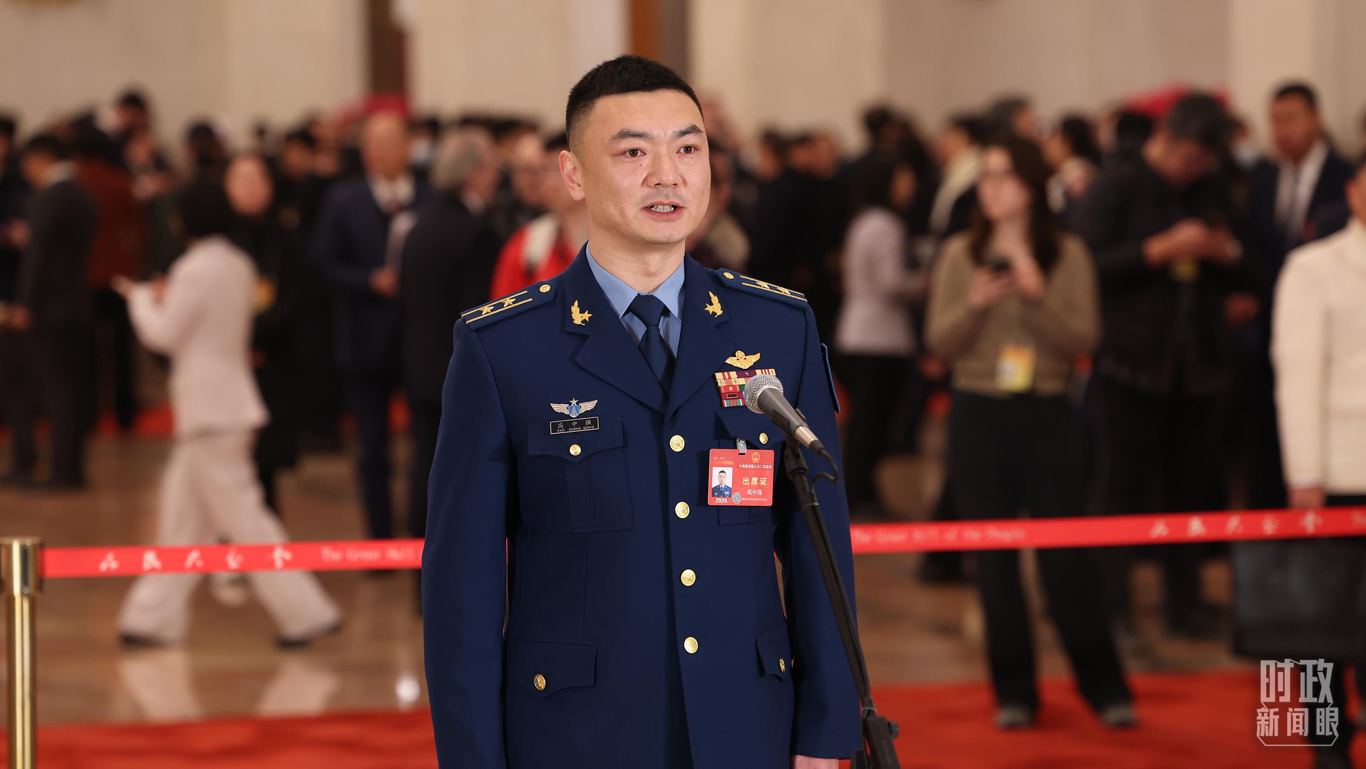 △2024年3月5日,十四屆全國人大二次會議首場“代表通道”集中采訪活動中,全國人大代表、空軍航空兵某旅副參謀長高中強正在答記者問。(圖/視覺中國)