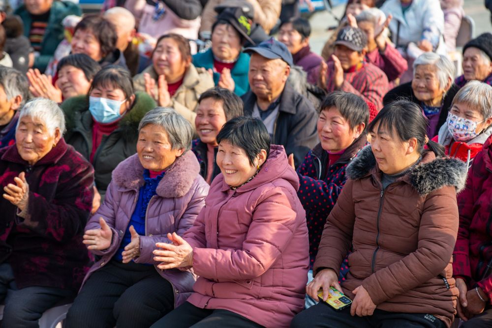 2024年2月11日,江蘇省海安市胡集街道園莊村村民在“村晚”上欣賞文藝節目。新華社發(翟慧勇攝)