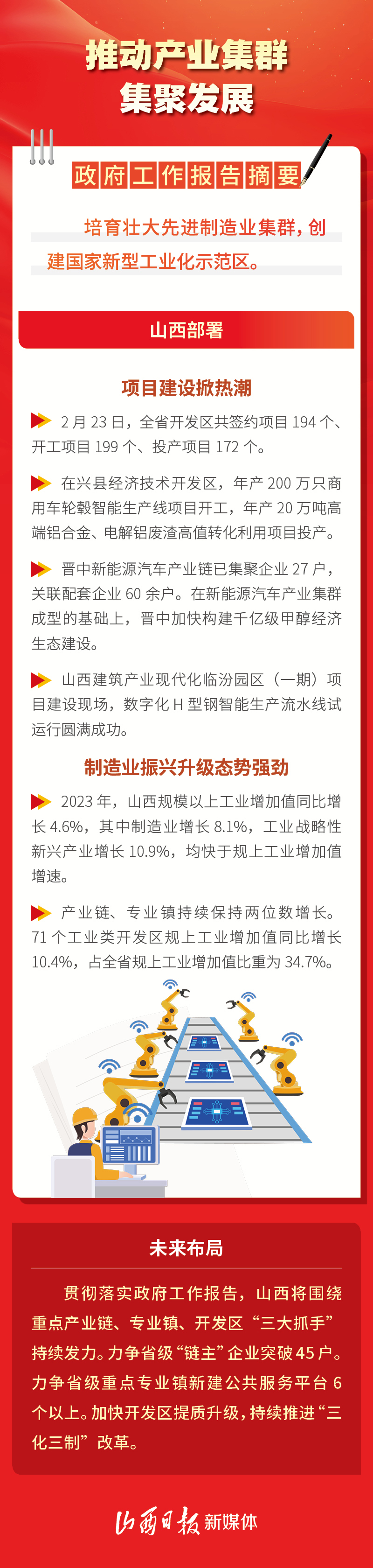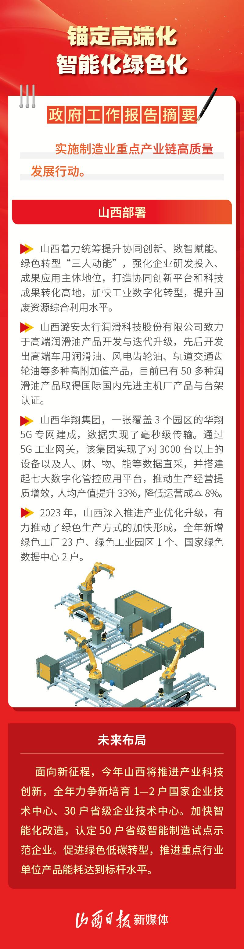 今年的政府工作報告,對制造業發展進一步提出明確要求,必將鼓舞山西在加快建設中部地區先進制造業基地的大路上闊步前進。