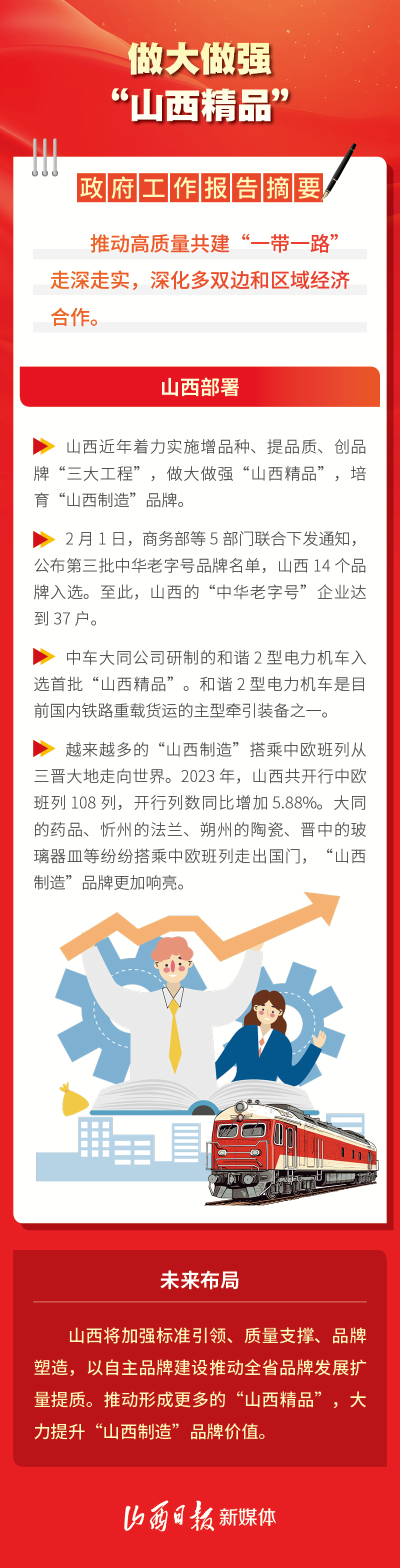 以科技創新為引領,以制造業振興升級為主攻方向,新的一年里,山西上下將繼續大力推進新型工業化,做強做大“山西精品”,不斷拭亮“山西制造”品牌。