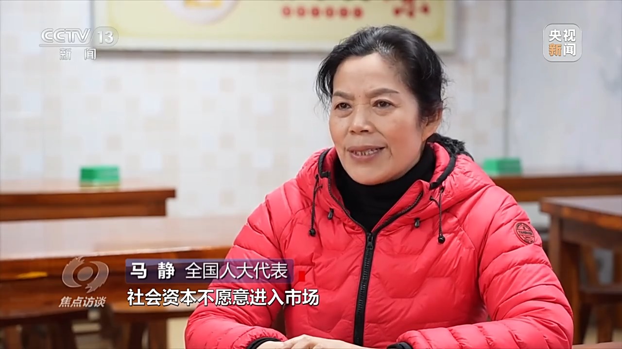 全國人大代表 馬靜:由于利潤等原因,社會資本不愿意進入市場,我也希望政府通過減免房租、政策上的幫扶等降低成本,引導社會資本參與社區老年食堂,讓更多的老年人在家門口吃上可口的飯菜。