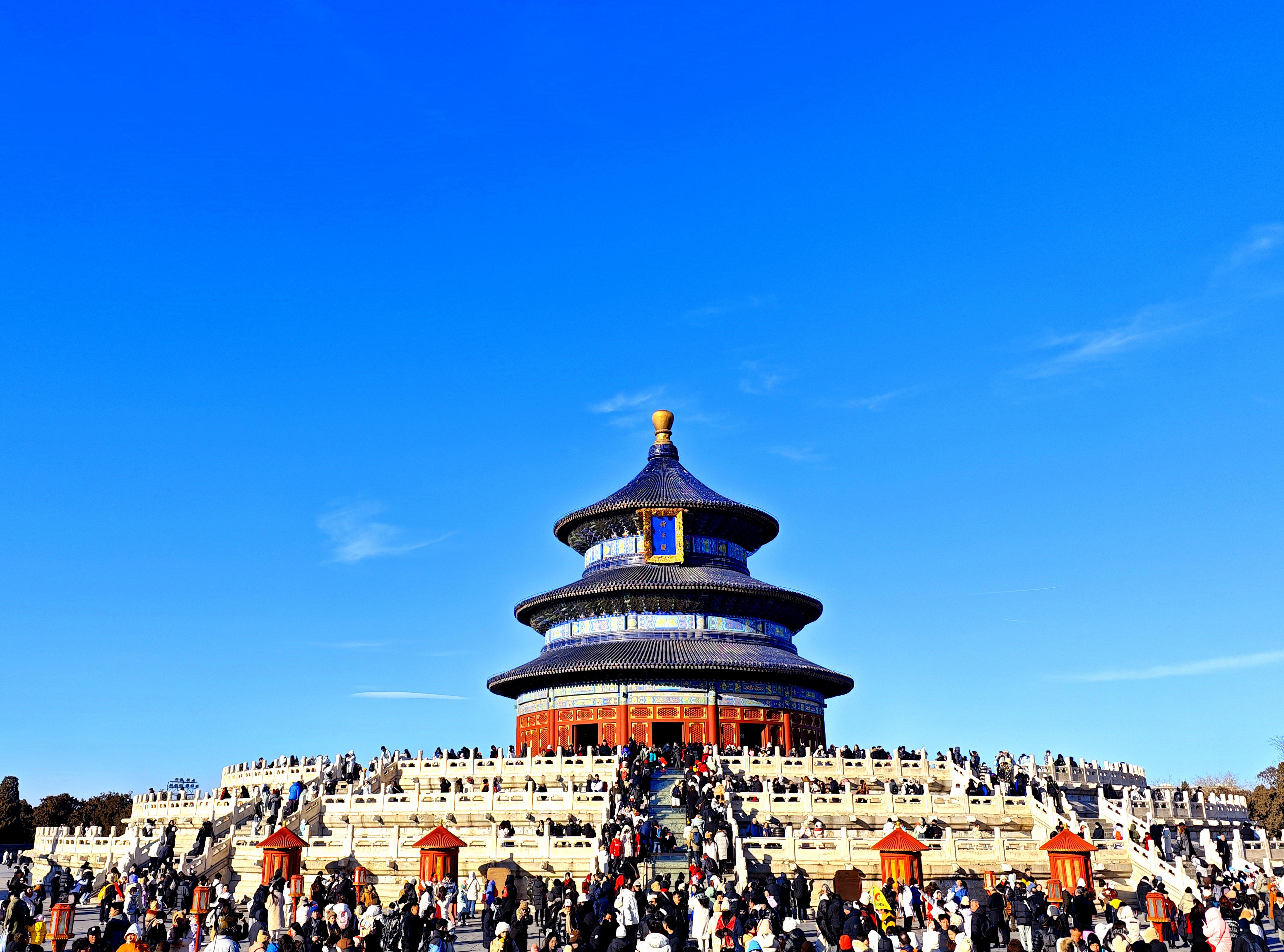 △2024年1月23日,北京持續晴好天氣,天壇公園藍天白云。最新數據顯示,北京PM2.5年均濃度連續三年穩定達標,“北京藍”已成為常態。