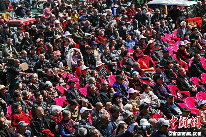 3月14日,在千年古城山西運城新絳的百年古槐廟會上,山西省蒲劇藝術院演出一團上演《打神告廟》《楊廣逼宮》《李逵探母》等經典折子戲,吸引十里八鄉的民眾前來觀看。這是山西2024年1萬場“免費送戲下鄉進村”惠民工程“唱響”三晉大地的一個縮影。