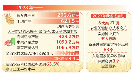 春風(fēng)十里,農(nóng)事漸忙。放眼河?xùn)|沃野、平陽(yáng)大地,返青的麥苗長(zhǎng)勢(shì)正旺,農(nóng)技人員深入田間地頭,查苗情、測(cè)墑情,講技術(shù)、送服務(wù),指導(dǎo)麥農(nóng)開展春季麥田管理,共同為奪取夏糧豐產(chǎn)豐收打下堅(jiān)實(shí)基礎(chǔ)。 一分耕耘一分收獲。近年來(lái),我省糧食和重要農(nóng)產(chǎn)品生產(chǎn)穩(wěn)定、供給充足,農(nóng)業(yè)農(nóng)村現(xiàn)代化不斷邁出新步伐。2023年,糧食總產(chǎn)量295.6億斤,平均畝產(chǎn)623.5斤,均創(chuàng)歷史新高;人民群眾的米袋子、菜籃子、果盤子更加豐富,肉蛋奶總產(chǎn)量428.2萬(wàn)噸,水果、蔬菜產(chǎn)量分別達(dá)到1093.2萬(wàn)噸、1065.9萬(wàn)噸;全省農(nóng)村居民人均可支配收入17677元,同比增長(zhǎng)8.3%。這些成績(jī)的取得,得益于科技賦能助力。2023年我省農(nóng)業(yè)科技貢獻(xiàn)率達(dá)到63.5%,高于全國(guó)平均水平。 良技在手 糧食生產(chǎn)捷報(bào)頻傳 “喂,黨老師您好!我是臨汾市堯都區(qū)吳村鎮(zhèn)喬化村為民惠眾合作社的王惠忠,我想問(wèn)一下隨著氣溫回升,麥田該咋管理,您能給指導(dǎo)一下嗎?”“好的,我現(xiàn)在就去你們村看一下,最好是把種糧大戶和技術(shù)人員都組織過(guò)來(lái),咱們現(xiàn)場(chǎng)交流。”3月12日,山西農(nóng)業(yè)大學(xué)(省農(nóng)科院)小麥研究所副所長(zhǎng)、省小麥產(chǎn)業(yè)技術(shù)體系副首席黨建友研究員接到了一個(gè)麥農(nóng)的電話,結(jié)束通話后,他立即帶領(lǐng)團(tuán)隊(duì)前往現(xiàn)場(chǎng)查看苗情,并叮囑麥農(nóng):“要做好追肥澆水工作,促進(jìn)麥苗早返青,提高春生分蘗成穗率,奠定穩(wěn)產(chǎn)高產(chǎn)基礎(chǔ)。”麥農(nóng)王惠忠連連點(diǎn)頭、不斷感謝,“真是太好啦,專家隨叫隨到、服務(wù)到位,給我們吃了定心丸。” 從播下一粒種子,到變成沉甸甸的果實(shí),作物一般要經(jīng)歷出苗、開花、灌漿、成熟等生長(zhǎng)周期,任何一個(gè)環(huán)節(jié)、任何一項(xiàng)措施都必須落實(shí)到位。每年年初,省農(nóng)業(yè)農(nóng)村廳就發(fā)布現(xiàn)代農(nóng)業(yè)主推技術(shù)、主推標(biāo)準(zhǔn)、主推品種,為老百姓提供選擇參考,目前良種覆蓋率達(dá)到97%以上。 今年春節(jié)假期剛結(jié)束,大范圍寒潮雨雪天氣影響我省。省小麥產(chǎn)業(yè)技術(shù)體系服務(wù)專隊(duì)立即組織農(nóng)技人員進(jìn)村入戶指導(dǎo)小麥生產(chǎn),3個(gè)服務(wù)專隊(duì)分赴芮城、新絳、翼城、襄汾、霍州、浮山和太谷等縣市區(qū)實(shí)地開展墑情苗情調(diào)查。同時(shí),制定“山西冬小麥應(yīng)對(duì)早春寒潮雨雪攻略”,運(yùn)用報(bào)紙、電視、廣播、互聯(lián)網(wǎng)等各種媒體廣泛宣傳,第一時(shí)間將防范應(yīng)對(duì)措施告知麥農(nóng)和生產(chǎn)主體。近日,省植保中心又組織科研、教學(xué)和推廣單位專家,對(duì)全省農(nóng)作物重大病蟲草害發(fā)生趨勢(shì)進(jìn)行會(huì)商,以便及時(shí)采取有效措施防控。 科技是高質(zhì)量發(fā)展的關(guān)鍵驅(qū)動(dòng)力,是糧食豐產(chǎn)增收的保障。多年來(lái),我省不斷強(qiáng)化科技創(chuàng)新,著力破解一批制約農(nóng)業(yè)農(nóng)村發(fā)展的技術(shù)瓶頸,不斷為全省“三農(nóng)”發(fā)展增動(dòng)力、添活力。我省糧食產(chǎn)量分別在2013年、2020年、2022年先后跨過(guò)270億斤、280億斤、290億斤三個(gè)臺(tái)階。2023年,我省聚焦良田、良種、良法、良機(jī)、良制“五良”集成組裝的綜合性解決方案,糧食總產(chǎn)量達(dá)到295.62億斤,再創(chuàng)歷史新高,“噸糧田”“噸半糧田”等示范創(chuàng)建試點(diǎn)不斷挖掘增產(chǎn)潛力。2023年我省還啟動(dòng)5大類27項(xiàng)農(nóng)業(yè)關(guān)鍵核心技術(shù)攻關(guān),實(shí)施種業(yè)振興五大行動(dòng),新通過(guò)國(guó)家審定登記品種63個(gè),入選國(guó)家優(yōu)異農(nóng)作物種質(zhì)資源3個(gè),全國(guó)最多。 在全省農(nóng)辦主任農(nóng)業(yè)農(nóng)村局長(zhǎng)會(huì)議上,省農(nóng)業(yè)農(nóng)村廳廳長(zhǎng)孫京民表示,今年我省將聚焦“穩(wěn)糧保供、學(xué)習(xí)運(yùn)用‘千萬(wàn)工程’經(jīng)驗(yàn)、鞏固拓展脫貧攻堅(jiān)成果”“三件大事”,扎實(shí)實(shí)施“糧食單產(chǎn)提升、高標(biāo)準(zhǔn)農(nóng)田建設(shè)、現(xiàn)代設(shè)施農(nóng)業(yè)增效、產(chǎn)業(yè)融合提效”等“九大工程”,省里還將組織啟動(dòng)綠色高效生產(chǎn)、特色農(nóng)產(chǎn)品加工等5個(gè)領(lǐng)域農(nóng)業(yè)關(guān)鍵核心技術(shù)攻關(guān),不斷加強(qiáng)農(nóng)業(yè)科技創(chuàng)新和技術(shù)推廣。 良機(jī)配套 農(nóng)業(yè)質(zhì)效顯著提升 農(nóng)機(jī)一響,種地不慌。2023年,全省農(nóng)機(jī)總動(dòng)力達(dá)到1803.5萬(wàn)千瓦,“互聯(lián)網(wǎng)+”與農(nóng)機(jī)化深度融合,加裝北斗導(dǎo)航的拖拉機(jī)、聯(lián)合收割機(jī)3萬(wàn)余臺(tái)。全省主要農(nóng)作物耕種收綜合機(jī)械化率達(dá)到76.1%,較2022年增長(zhǎng)1.1個(gè)百分點(diǎn)。機(jī)械化已經(jīng)成為農(nóng)業(yè)生產(chǎn)的主力軍。許多適宜丘陵山區(qū)耕整地機(jī)械、