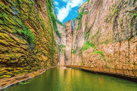 太行山腹地有一個地方,地殼相對運(yùn)動產(chǎn)生的巨大能量,把這里硬紅石、英砂巖、頁巖層組成的山岳切出道道峽谷,峭壁連綿數(shù)十公里,拔地而起,直沖云霄……這里,就是位于長治市黎城縣的黃崖洞。有人說,黃崖洞是多彩的,既有國家地質(zhì)公園的神秘黃色,也有山色清奇、碧波蕩漾的綠色,還有獨(dú)屬精神土壤的紅色,各色變化,又互相融合,吸引著人們紛至沓來。
