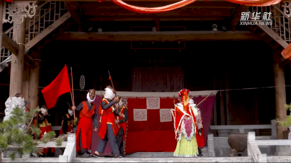 地處武陵山區(qū)的重慶市酉陽土家族苗族自治縣,農(nóng)歷五月迎來水稻插秧后的農(nóng)閑期。忙完插秧工作的陳永霞、冷定祥,在田埂上一邊休息一邊比劃起新劇目的表演動作。