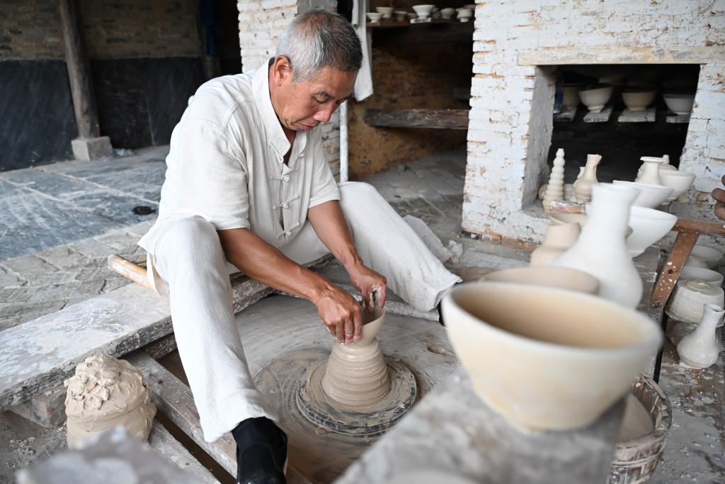 非物質文化遺產傳承人宗鴻新在拉坯。新華社記者 隋尚君 攝