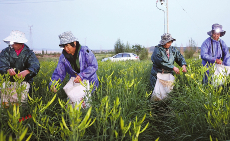 唐家堡村村民唐萬手法嫻熟,只見他輕巧地捏住黃花的底部,輕輕一旋,一朵完整的黃花便落入籃中,動作既迅速又小心翼翼,生怕損傷了這些嬌嫩的花朵。“為了確保黃花的品質,采摘工作必須在夜間進行。因為高品質的黃花是未開放的花蕾,一旦見到陽光,黃花會迅速盛開,其食用價值和經濟價值都會大打折扣。因此,我們需要與時間賽跑,趕在黃花綻放前完成采摘任務。”唐萬邊摘黃花邊對旁邊的新手解釋。