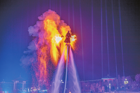 ①運城鹽湖景區火壺表演。薛俊攝