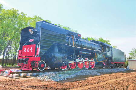 如今,大東溝成了煤礦生產設備的“露天博物館”,陳列著井下使用過的綜采支架、掘進機、齒軌車、風機、高壓開關、移動變電站、礦用潛水泵等40余種、近300件設備,為中國煤礦不同歷史發展階段保留了珍貴標本。其中,有兩處展品更為引人注目:一是一臺時速80公里、牽引力324千牛的前進型蒸汽機車,1975年由大同機車廠生產,1994年由潞安集團統一安排承擔石圪節煤礦和兄弟礦井的煤炭外運及漳澤電廠的煤炭直送任務,是潞安集團首批鐵路運輸牽引機車,直到2007年機車轉型升級后停用。如今,這臺蒸汽機車已經成為一代人的記憶,也是不少人打卡的網紅地標。還有一處是給人留下深刻印象的軌道墻。兩道長6米的水泥墻,墻體里鑲嵌著從石圪節井下運上來的標有不同年代的道軌,如產于1902年的德國道軌、產于1905年的比利時道軌、產于1915年的由漢陽鐵廠制造的道軌等。這些標有生產年代的道軌,當年在井下作為支撐物或巷道頂棚使用,如今成為石圪節煤礦發展歷程的見證,默默地向人們訴說石圪節開采歷史的久遠。