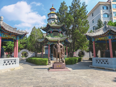 穿過大門,一座約3米高的古銅色左權將軍塑像巍然屹立。將軍身披軍大衣,目光堅定地望向遠方,仿佛仍在守護這片曾經戰斗過的土地。塑像后方,蒼松翠柏掩映著亭臺廊廡,肅穆之感油然而生。