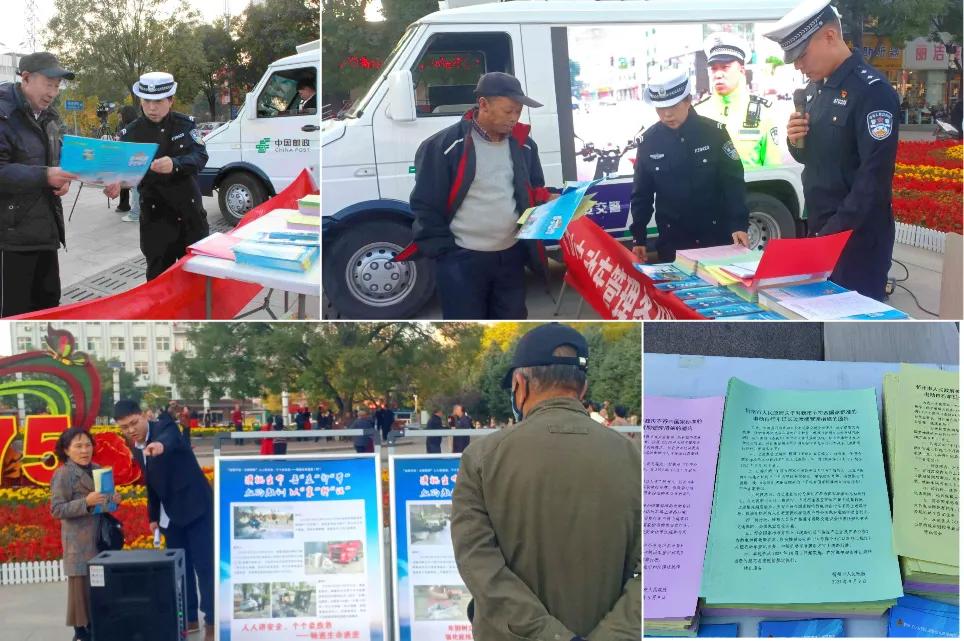 在人頭攢動的廣場上,“一盔一帶”宣傳展板、警郵直播車大屏幕吸引了過往群眾駐足觀看?!按髬專滦抻喌摹缎弥菔须妱榆嚬芾項l例》已于本月1日起開始施行,您知道嗎?”“大叔,您這舊的電動自行車要抓緊時間登記備案、辦理臨時牌照,咱忻府區24個警郵合作電動自行車便民登記服務網點都能辦理過渡期臨牌”“騎乘電動自行車必須要佩戴安全頭盔,不能闖紅燈、逆行......”