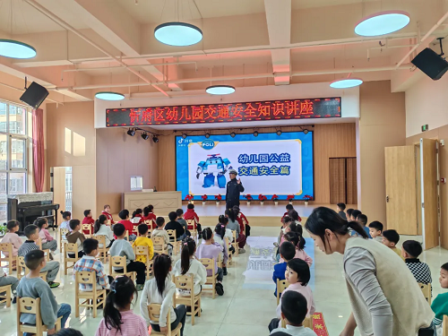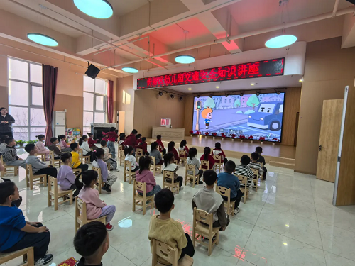 活動中,交警向園內幼兒及教職工播放了幼兒交通安全宣傳視頻,通過對視頻內容的講解,引導孩子們進一步理解交通安全法規與出行安全。