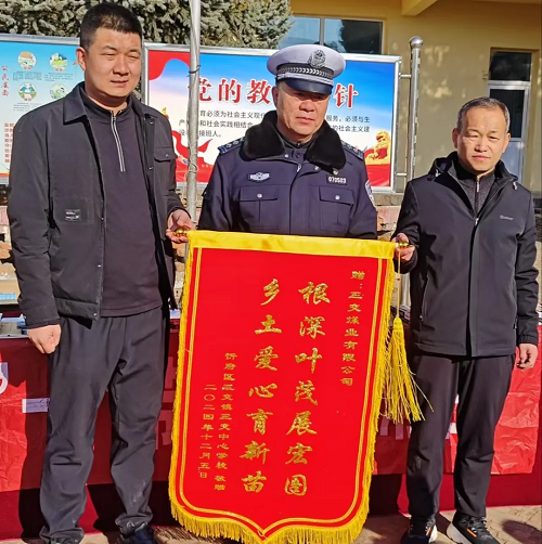 活動現場,忻州三交煤業有限公司將一批學習用品贈送給在校學生,希望每一位老師和學生都能把交通安全落實到位。
