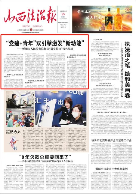 該院還發揮支部管理到人的特點,讓每名黨員都成為一面鮮紅的旗幟。2023年12月,忻州市人民檢察院謝金娜同志被評為“全國模范檢察官”。該院大力開展“學習身邊榜樣”活動,組織全體黨員向謝金娜同志學習,真正把黨建勢能轉化成工作動能,營造忠誠擔當、拼搏進取、風清氣正、團結和諧的良好氛圍。
