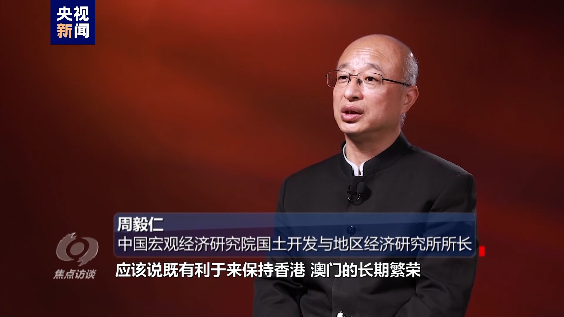 中國宏觀經(jīng)濟研究院國土開發(fā)與地區(qū)經(jīng)濟研究所所長 周毅仁:推進粵港澳大灣區(qū)共同的發(fā)展,應該說既有利于來保持香港、澳門的長期繁榮,也有利于帶動內(nèi)地的發(fā)展。
