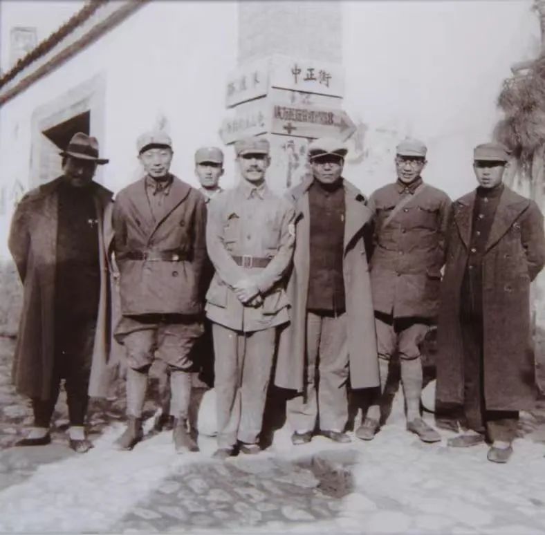 資料圖:1938年9月15日,白求恩模范病室建成典禮后,白求恩和晉察冀邊區(qū)領導在松巖口街上合影留念。左四為白求恩。